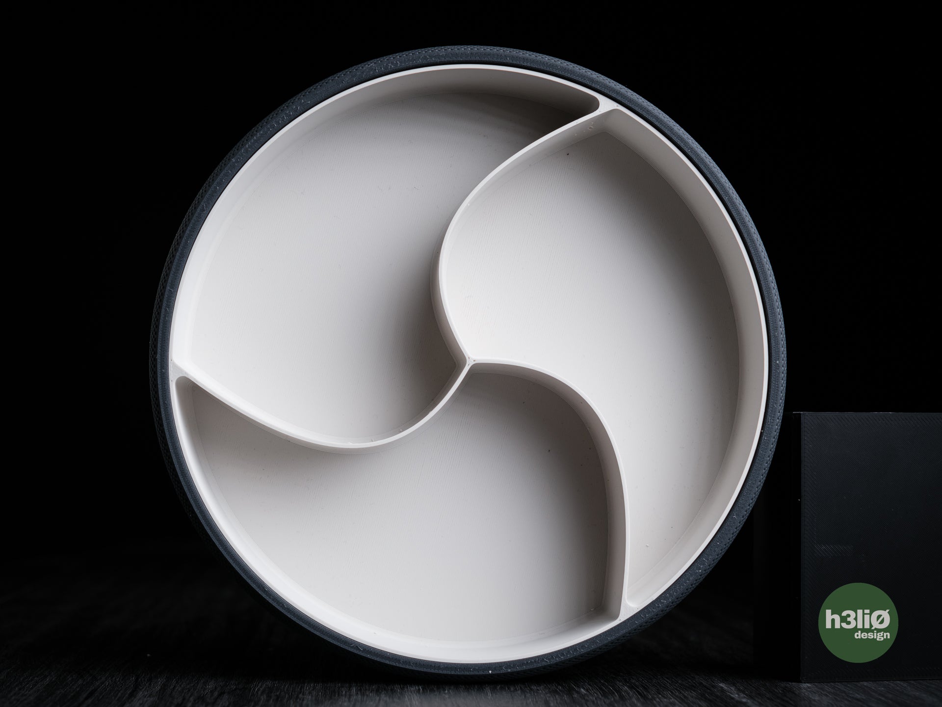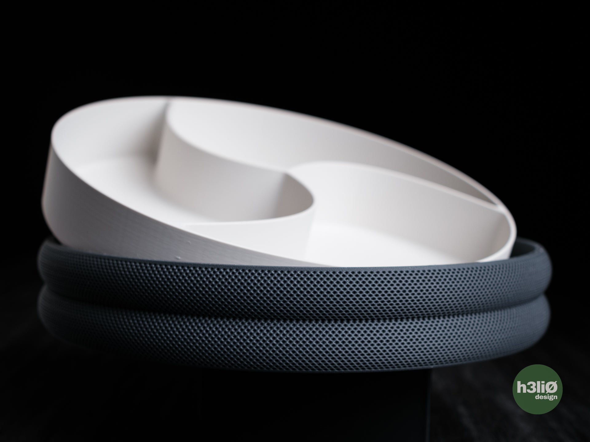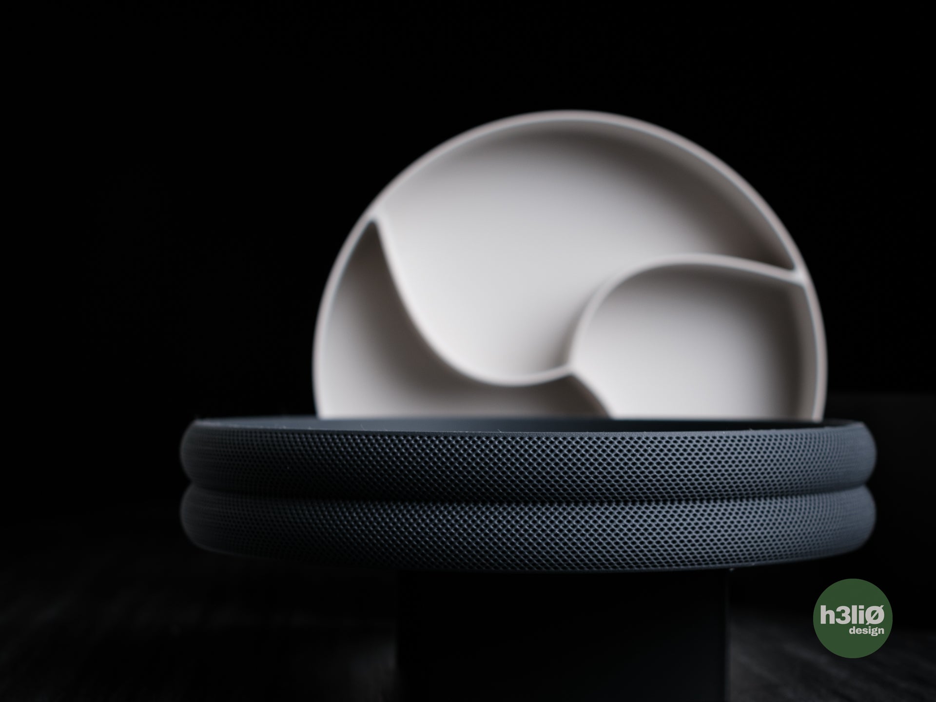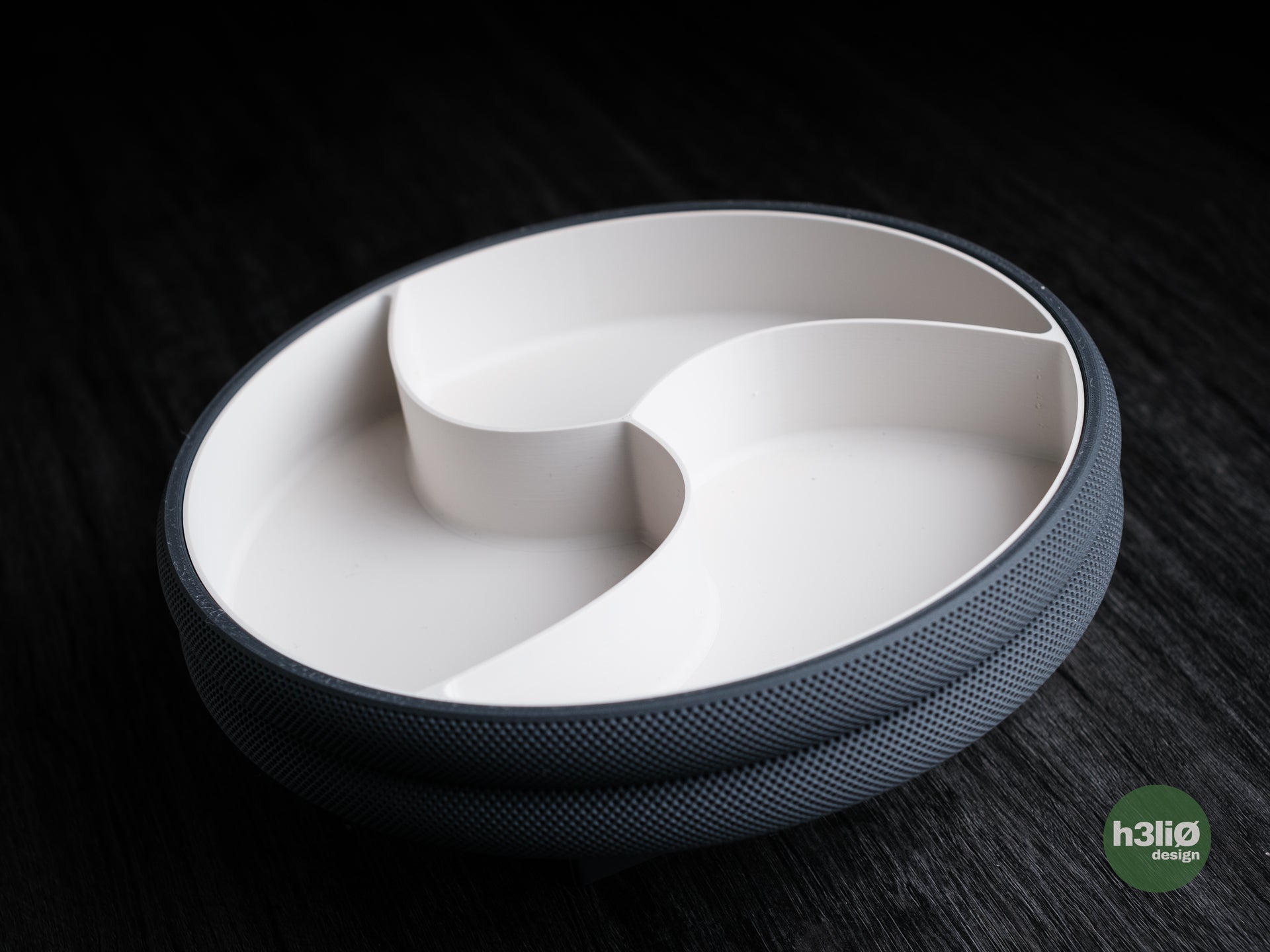 Grideo Catch all Bowl organises your essentials with refined simplicity. This contemporary vessel combines form and function, offering flexible storage for keys, jewellery, coins, and everyday items. The removable three-section insert adapts to your needs—use it for structured compartmentalisation or remove it entirely for open display. Crafted with attention to detail, it delivers understated elegance to any surface. Dimensions: 236 × 236 × 40 mm.