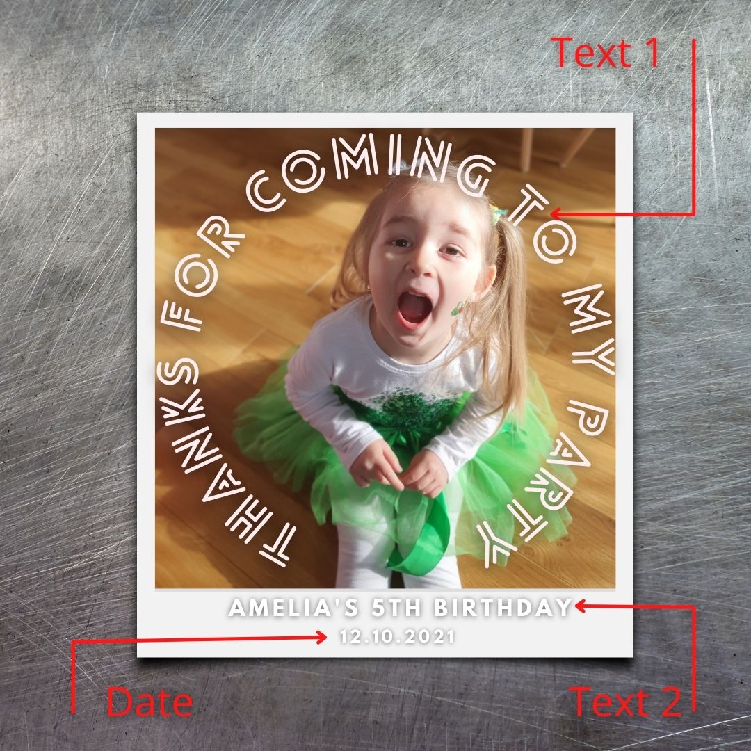 Do you have a special event coming up? Wedding, Engagement, Baby Shower, Christening, Communion, Party, Corporate Event? A personalised Thank you Fridge magnet is a great way to add recognition to your guests.
