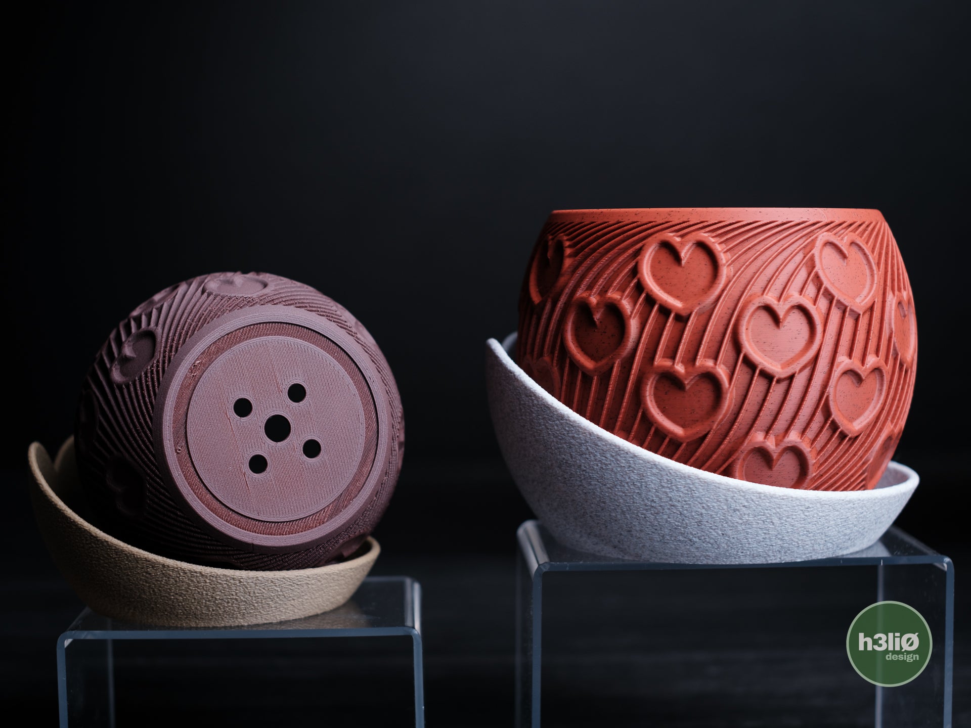 This heart-shaped planter proves style and practicality go hand in hand. Featuring bold geometric patterns and sleek contemporary lines, it's the kind of statement piece that transforms any corner into an Instagram-worthy display. The integrated drip tray keeps your surfaces safe from water damage while you nurture your botanical collection. Crafted via 3D printing and made-to-order by designer h3liØ, each planter is a one-of-a-kind creation tailored just for you. Why settle for ordinary when your plants can live in something extraordinary?